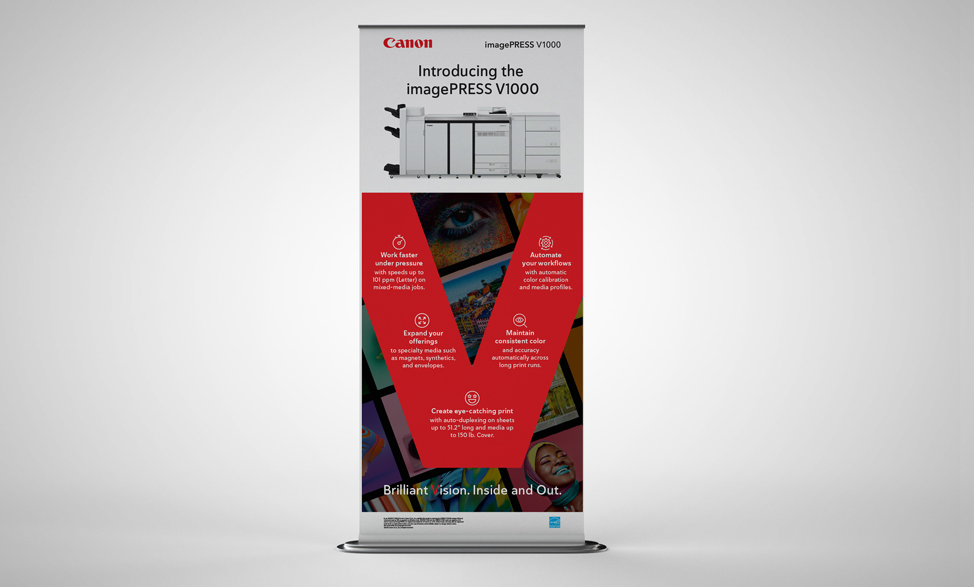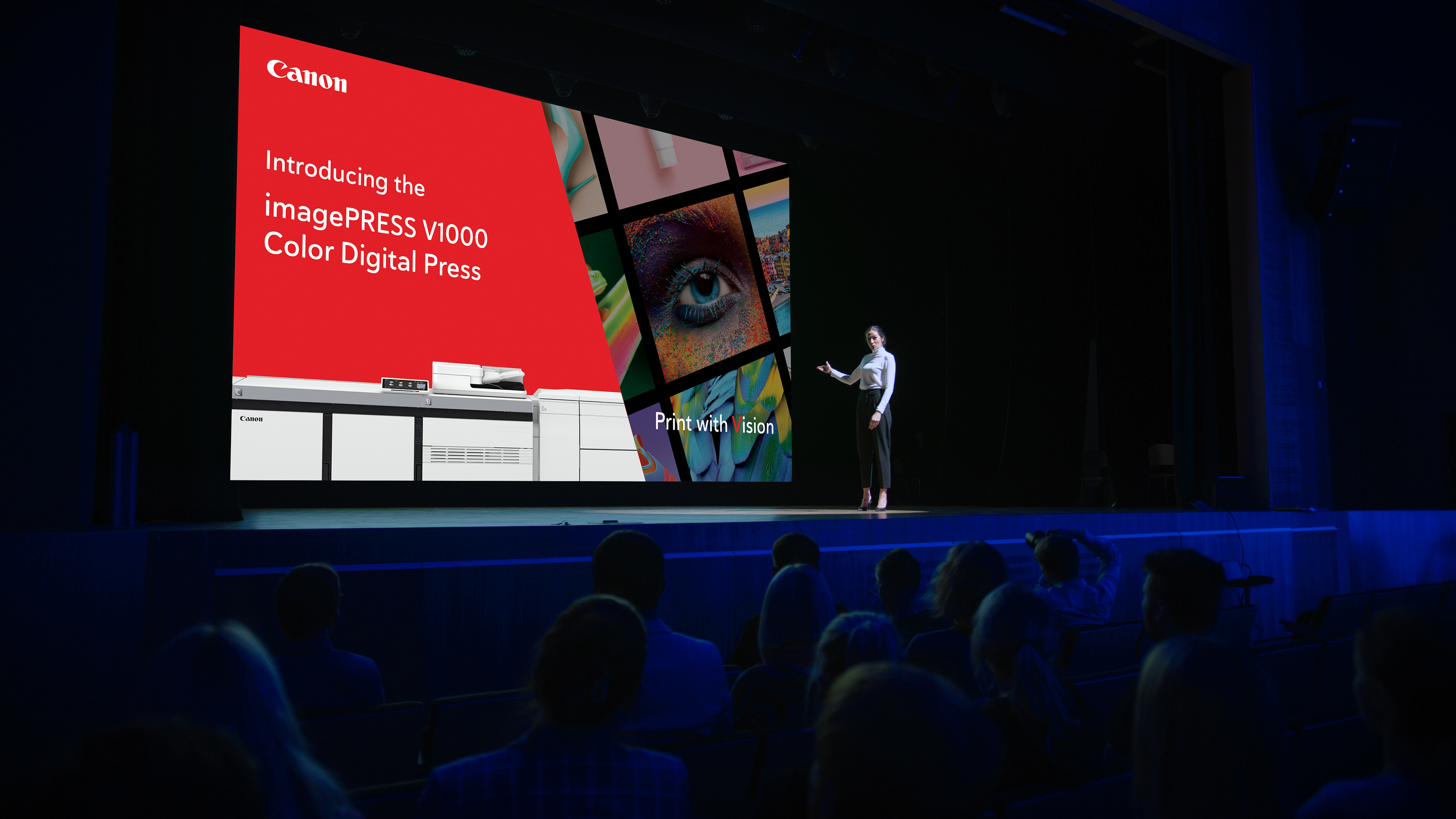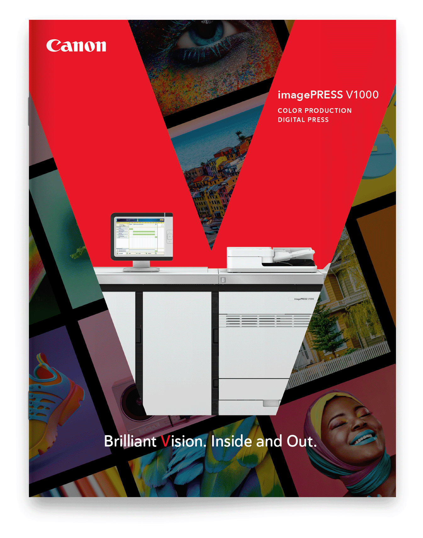 Brand identity for Canon's imagePRESS V series of color digital presses, introduced in 2022.