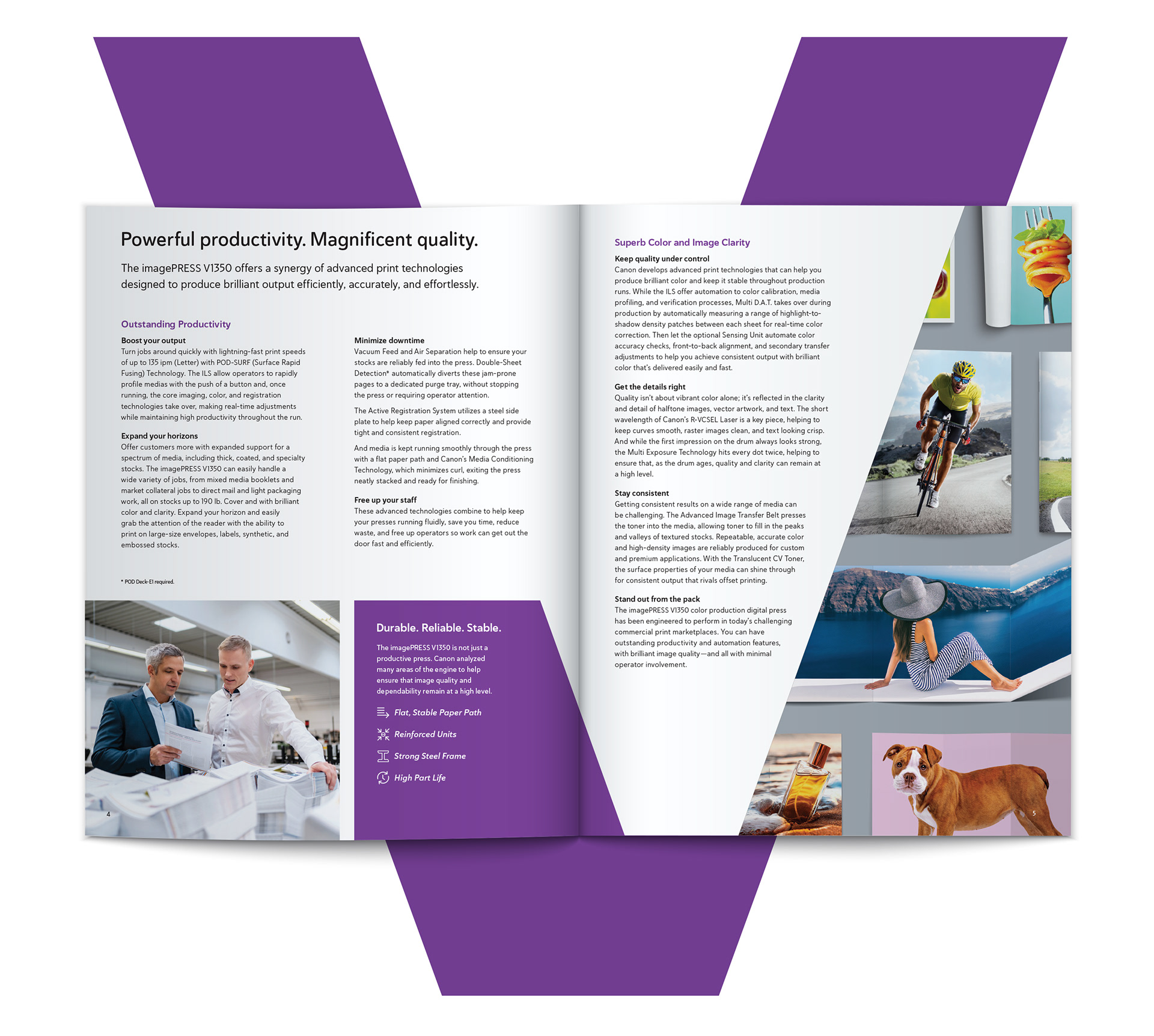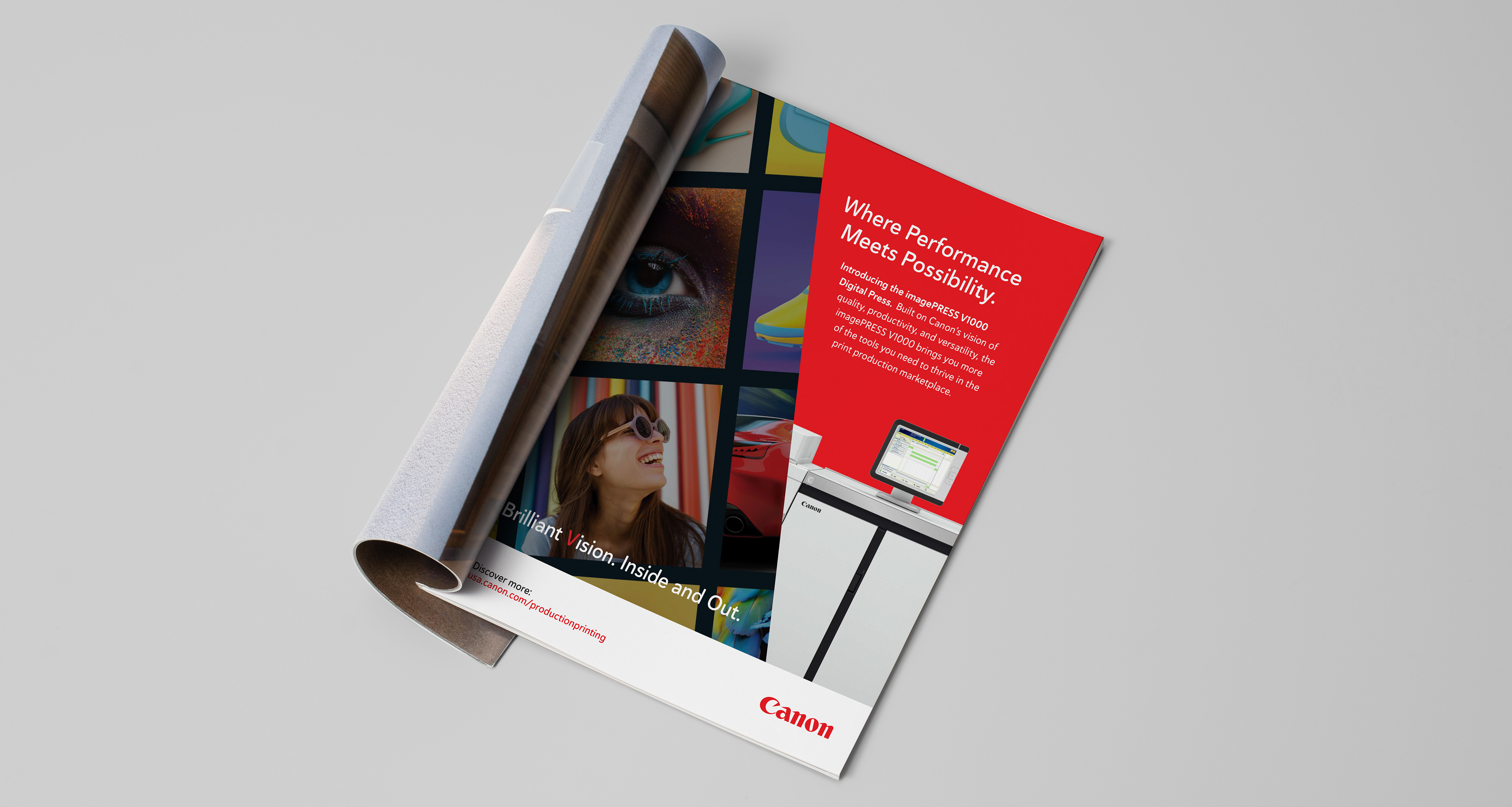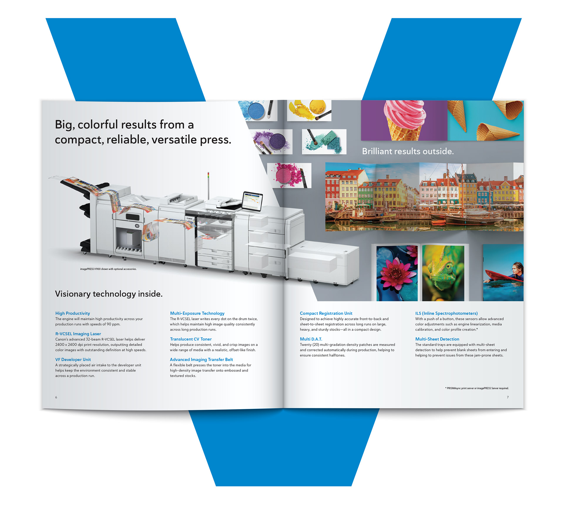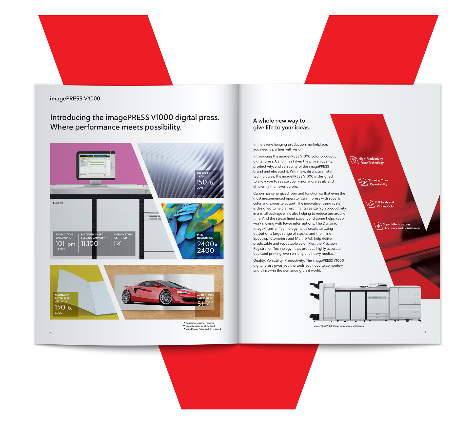 Brand identity for Canon's imagePRESS V series of color digital presses, introduced in 2022.
