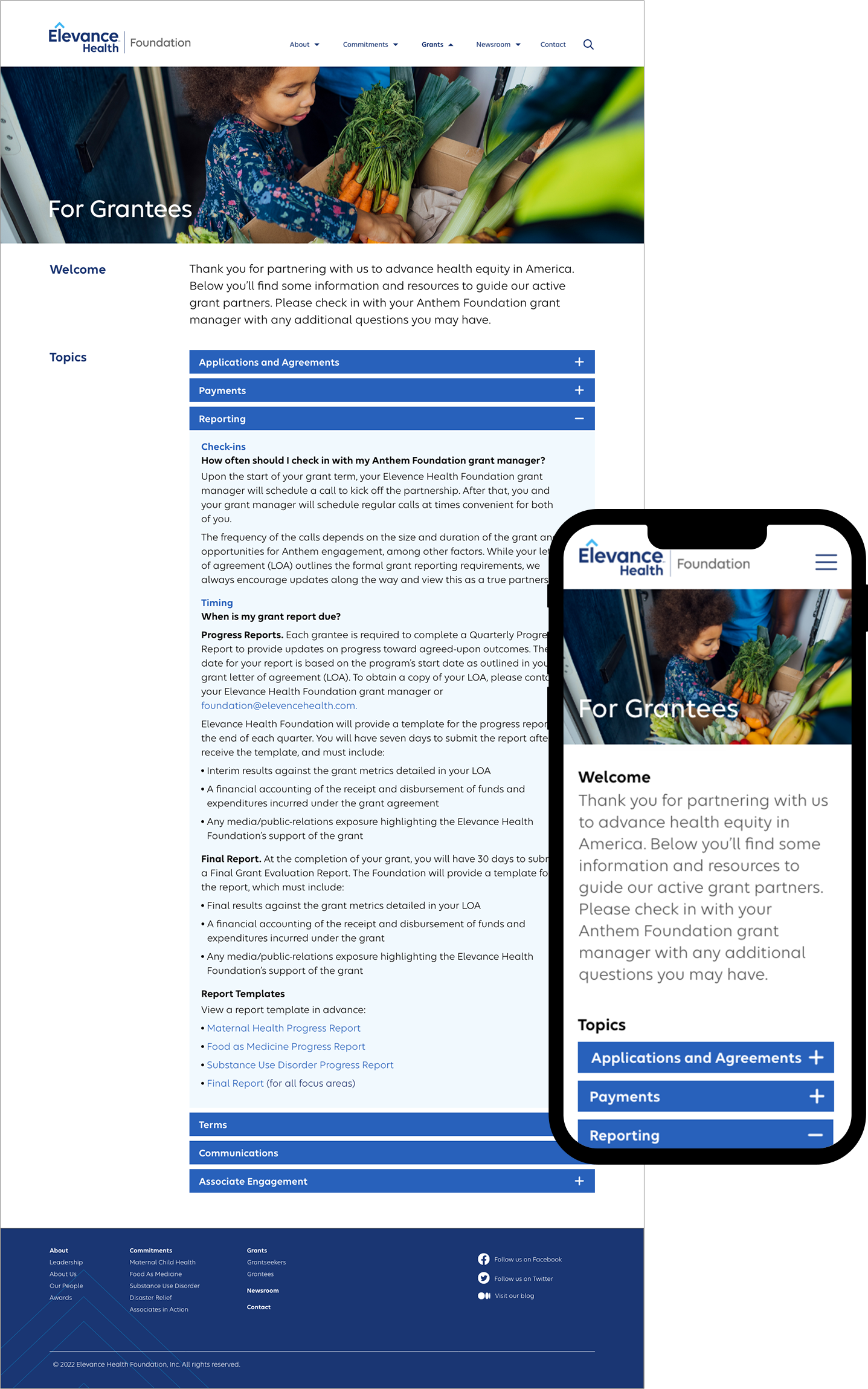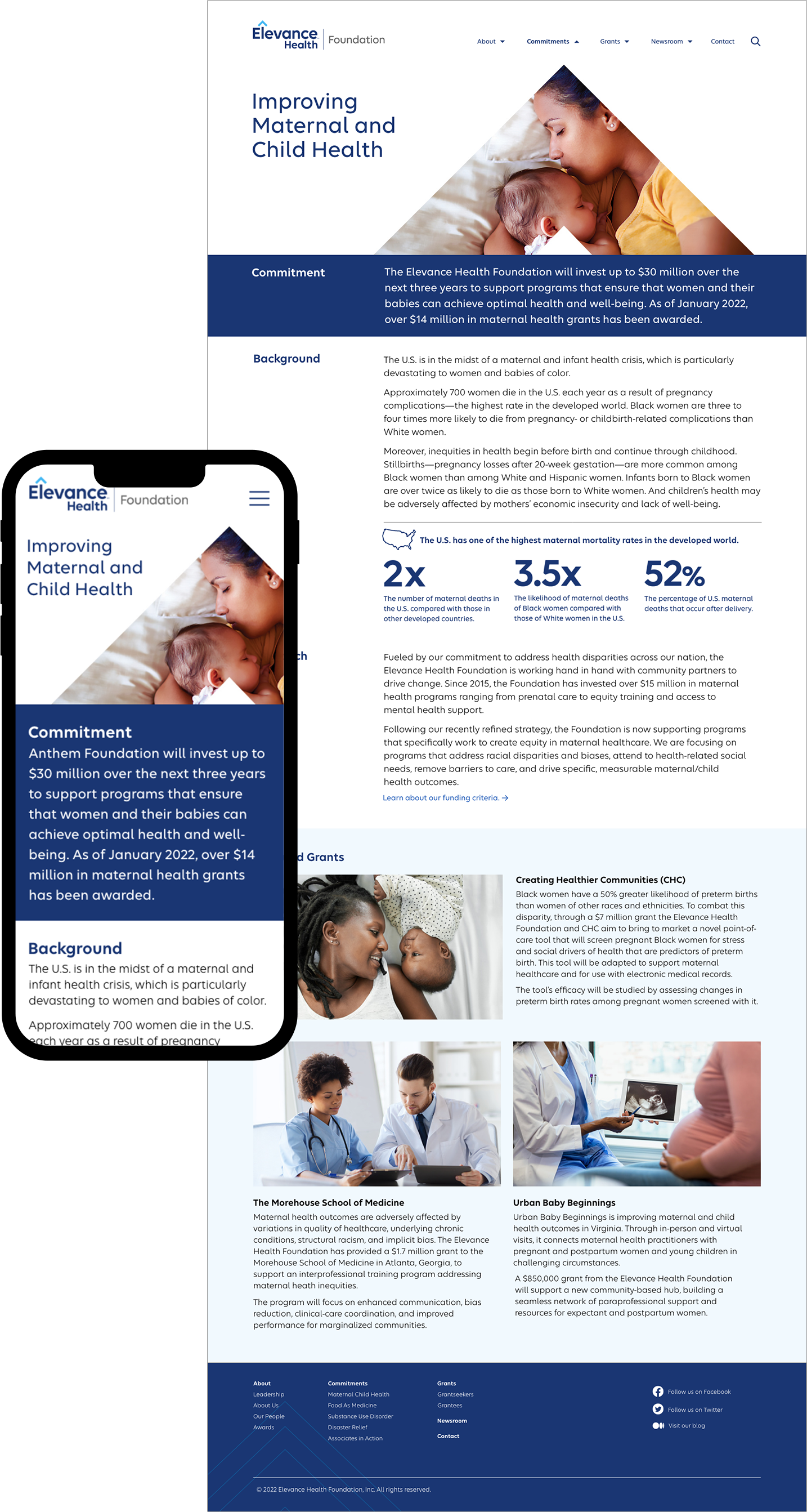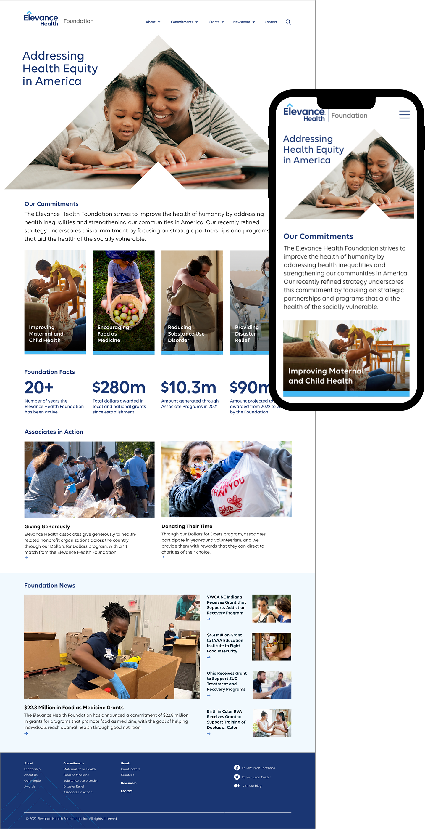 In 2022, when Anthem Inc. rebranded as Elevance Health, we were asked to redesign the Elevance Health Foundation website with new branding standards.